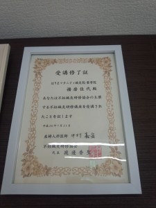 受講修了証 | 滋賀県大津市松原町 はりま整骨院・マタニティ鍼灸院